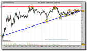 Simplificando las cosas, una superación clara de los 2,95 euros marcaría compra con la vista puesta en el enfrentamiento de la siguiente resistencia, la que cotiza en los 3,25 euros. Un cruce al alza solvente de esta última, daría una gran señal compradora en el medio plazo. Por abajo, la directriz alcista como soporte.