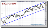 Con estas afirmaciones, siempre nos movemos a medio camino entre la elucubración pura y dura y la argumentación técnica. Mientras los gráficos no digan otra cosa, el Dax no ha dejado de ser alcista, tal y como se observa en la serie del futuro que acompañamos y en la que se ve perfectamente cómo el precio se mueve ordenadamente dentro de ese canal alcista de líneas negras. En el S&P 500, la corrección se desenvuelve plácidamente entre unos rangos bien definidos, sin que la sangre haya llegado al río a día de hoy. En cualquier momento, y el rally de fin de año puede ser una buena excusa, el precio debería girarse de nuevo al alza, siempre que no se pierdan los niveles de soporte relevantes.