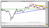 Un gran soporte y una gran resistencia resumen lo verdaderamente importante del análisis técnico que puede hacerse sobre el título. Esa línea verde de nuestro gráfico diario adjunto viene haciendo pivotar al precio entre el encuentro con una resistencia, primero, y el apoyo en un soporte, después, y así desde finales del año 2.008. Aunque sólo sea por eso, ya estaríamos ante un nivel de referencia de primerísimo orden. Si a ello le añadimos que a comienzos de agosto del año pasado se dejó justo en ese nivel de los 4,75 euros que viene a valer dicha línea verde un hueco de escape alcista, su virtualidad actual como soporte con mayúsculas para el precio aumenta considerablemente.