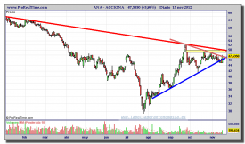 Ha sido hoy Acciona la reina del baile, encabezando las subidas en la bolsa nacional. Si esperan que vayamos a tirar cohetes por ello, van listos. Subir más de un cinco por ciento en una sesión no ha conseguido que el valor dé ninguna señal reseñable. Acciona sólo nos demostrará verdadera fortaleza en el corto plazo cuando sea capaz de cerrar por encima de los 50,05 euros.