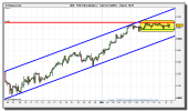 Mientras las líneas verdes, 10.900 puntos en el Ibex y 5.585 puntos en el Footsie, no se crucen claramente a la baja, el chartismo dice que estamos ante una típica pauta de consolidación previa al reinicio de un tramo en el sentido de la tendencia previa, es decir, al alza. De producirse esa rotura alcista, el techo del canal azul en el caso del índice inglés parece el destino probable para la cotización. En el caso del Ibex, la cosa se complica un poco, ya que de producirse en sesiones inmediatas se habría confirmado algo parecdio a un hombro-cabeza-hombro invertido (perdonen los puristas, pero la sicología que subyace es la misma sea como sea el dibujo del hombro derecho) con proyecciones en los máximos de enero.
