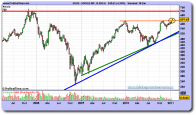 Después de dedicar todo el año 2010 a consolidar las subidas que le llevaron, prácticamente sin descanso, desde la zona de los 250 dólares a superar los 600, parece que por fin el título ha encontrado las fuerzas necesarias para batir la resistencia horizontal que cotizaba en la cota de los 625-630 dólares (línea naranja en el gráfico adjunto).