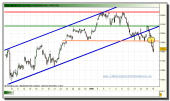 Echando un vistazo a la serie intradiaria del contado del Ibex 35, vemos cómo el precio titubea en esa zona de los 11.800 puntos a estas horas, sin saber muy bien qué hacer. Dudas entre dirigirse al encuentro de la resistencia horizontal más cercana, la que cotiza en la superación en cierres de los 11.950 puntos; o bien seguir bajando hasta cumplir con la proyección teórica de la pauta bajista confirmada y que se encuentra en el nivel de los 11.600 puntos.